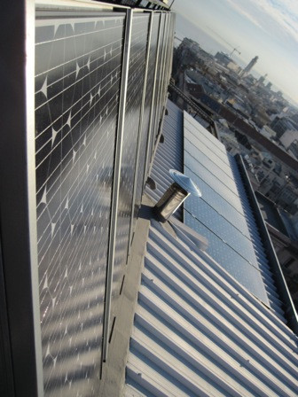 L'impianto fotovoltaico è stato realizzato in parte su ringhiera condominiale ed in parte su tettoia esistente di un'abitazione sita a Bari. I moduli sono esposti a SUD ed hanno un'inclinazione di circa 90° sull'orizzontale per i pannelli sulla ringhiera e di circa 10° per i pannelli sulla tettoia. Potenza Impianto: 4,8 kWp Moduli: n°16 della potenza di 300 Wp Tipologia: silicio monocristallino Inverter: n°2 da 3 kW Entrata in esercizio: 01/12/2010
